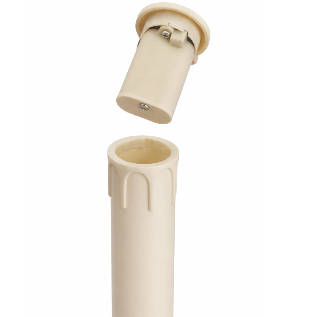 The battery-operated processional candles are processional consumables each formed of an imitation-wax tube, an LED bulb and a compartment for two AA batteries. This product is sold as a set of two.