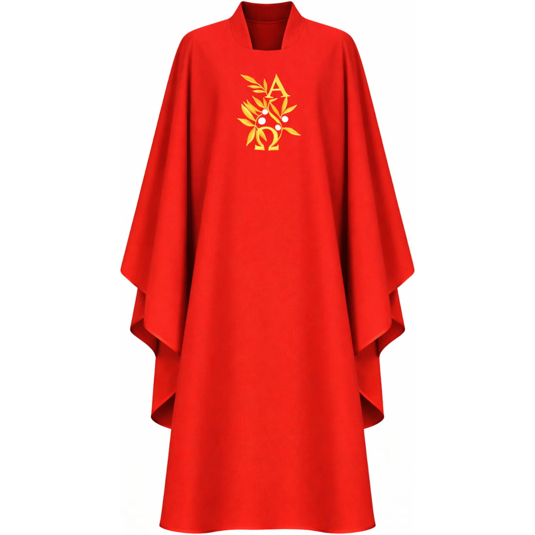 Polyester chasuble with red Alpha and Omega embroidery