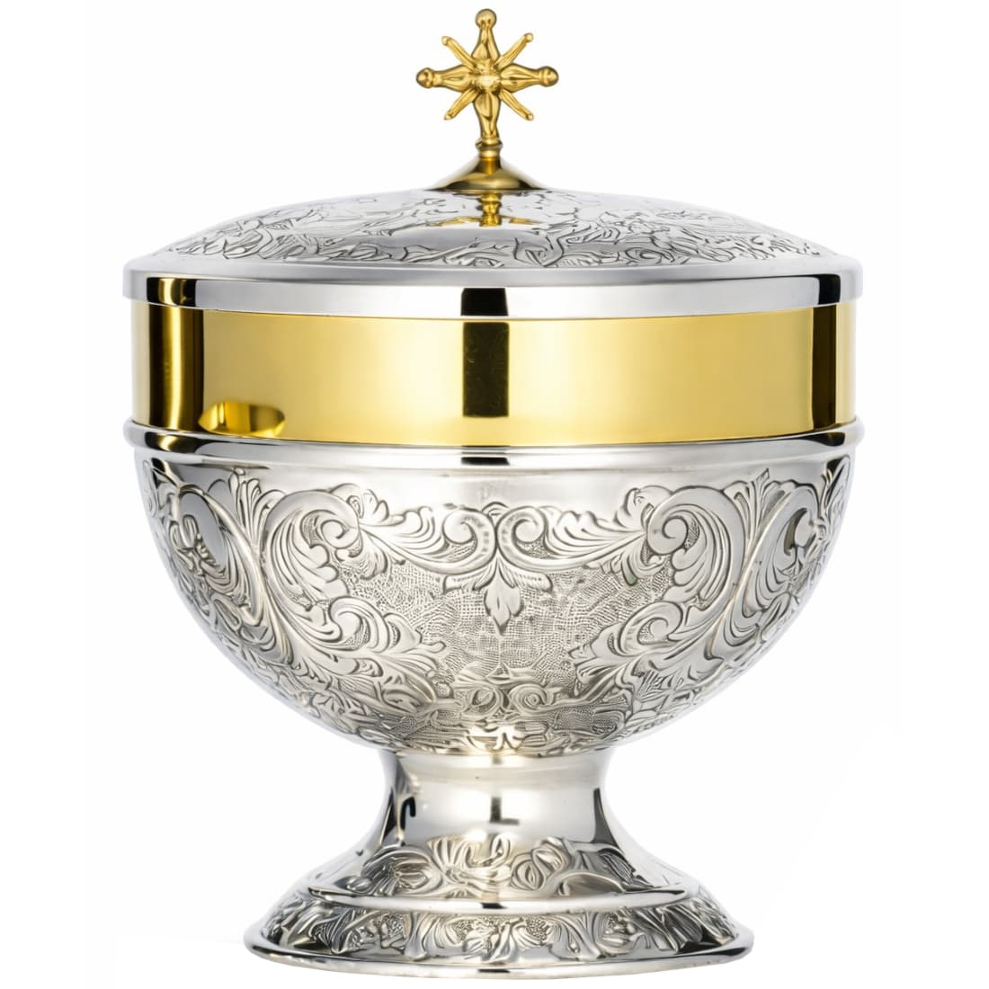Chiselled sterling silver ciborium with gold stripe