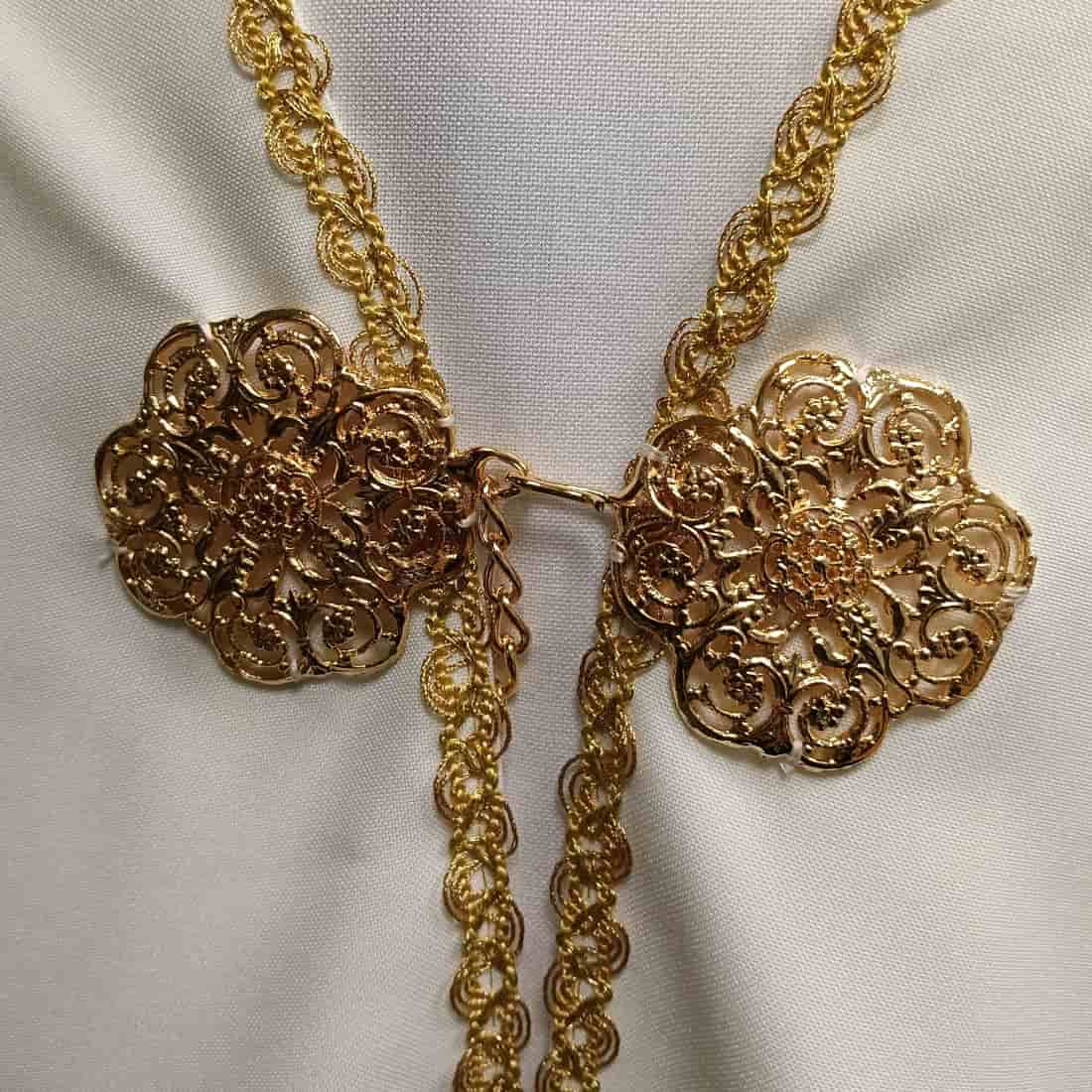 - Embroideries in gold-plated thread.