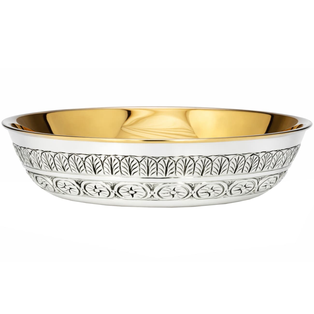 Silver paten with simple carving