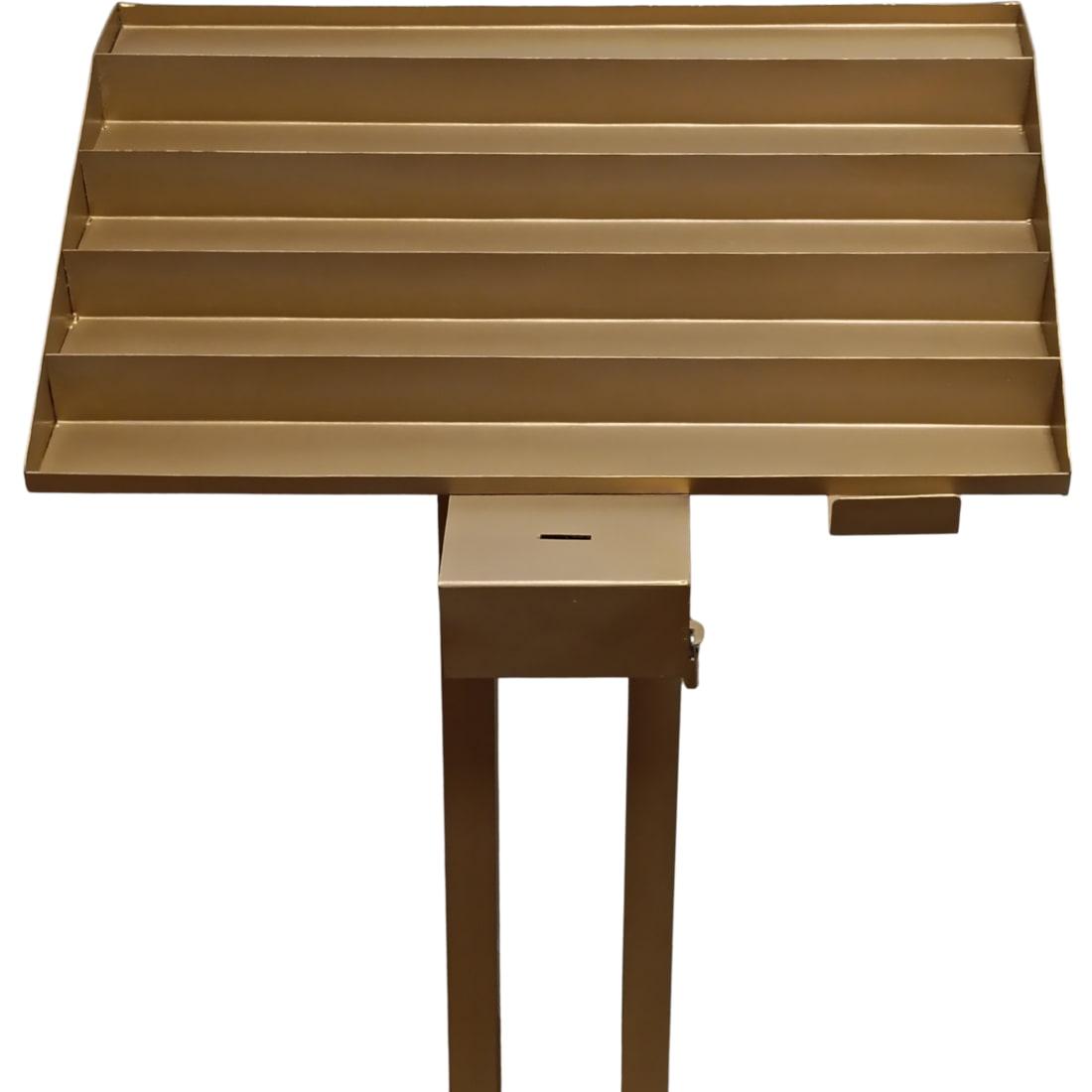 The offering box integrates the economic contribution into the same devotional gesture. In parish practice, having a compartment with closure reduces unwanted handling, allowing access only by key.